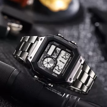 Men’s Military Sport Digital Watch – Stainless Steel, Waterproof, Countdown Timer